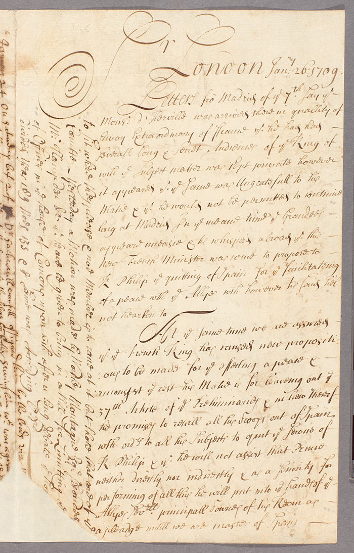 Manuscript newsletters from London, 1689–1710. Huntington Manuscript 30659, f. 115. The Huntington Library, Art Collections, and Botanical Gardens.