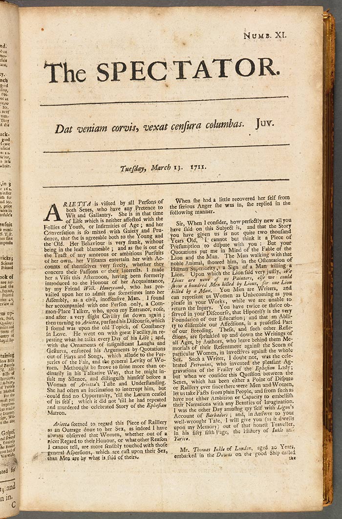 The Spectator, London, England, March 13, 1711. The Huntington Library, Art Collections, and Botanical Gardens.