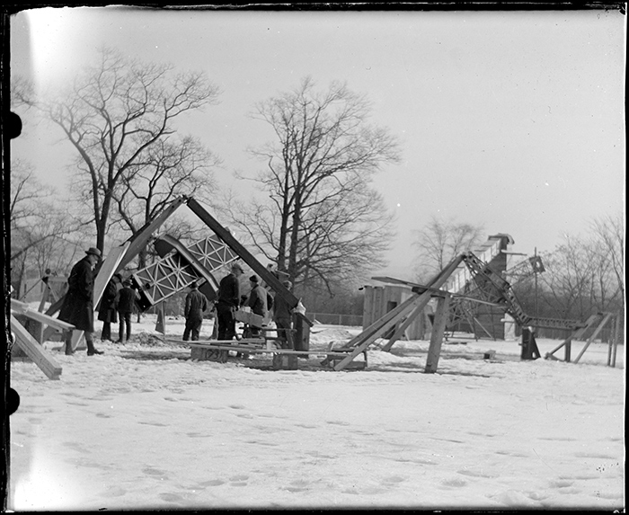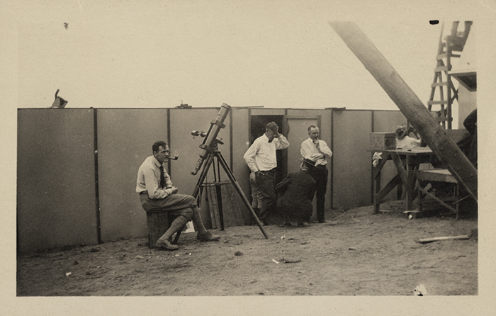 Scientists with their large telescopic cameras at the Mt. Wilson Observatory’s expedition site in Connecticut for the 1925 solar eclipse. Photo by the U.S. astronomer Edison Pettit (1889–1962), after whom a crater on the moon and a crater on Mars have been named. Image courtesy of the Observatories of the Carnegie Institution for Science Collection at The Huntington Library, Art Collections, and Botanical Gardens.