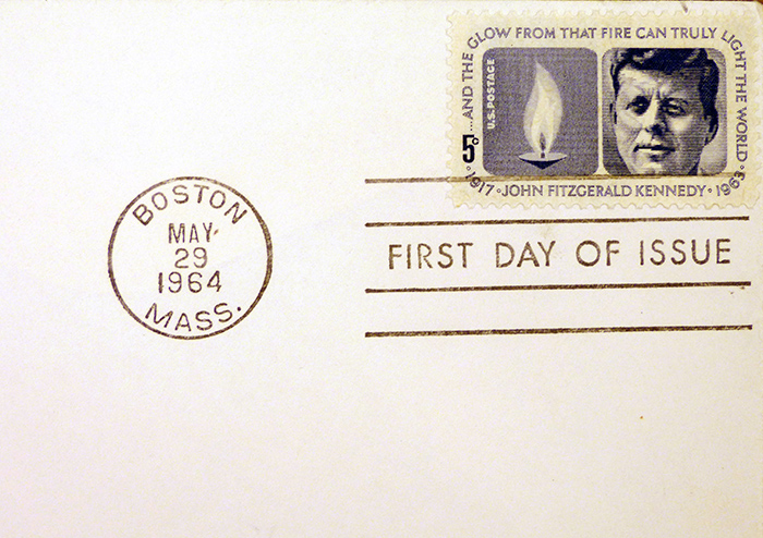 A first-day-of-issue of the JFK commemorative stamp.