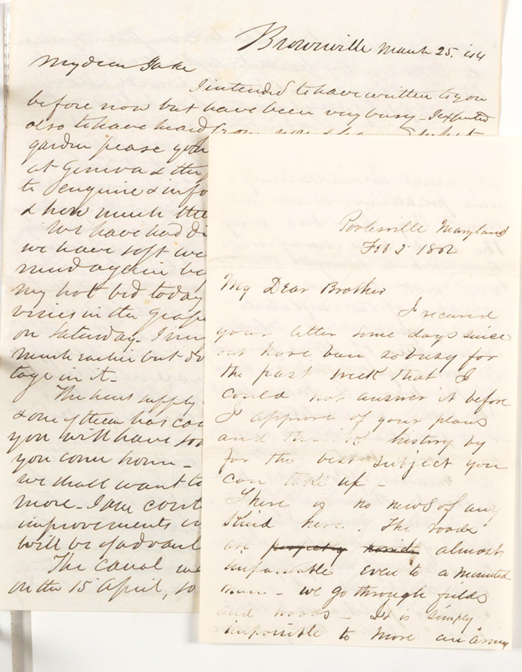 The collection includes a group of letters from Ned to Marvin—dispensing brotherly advice, describing cadets’ life at West Point, and discussing the increasingly turbulent national politics. Ned graduated from West Point in March 1861 and immediately joined the Union Army. He was mortally wounded in the battle of Chancellorsville and died in a Washington hospital in May 1863, the same day that President Lincoln commissioned the 23-year-old Lieutenant Brigadier General of Volunteers so that Ned’s widowed mother and young siblings could receive a more generous pension.