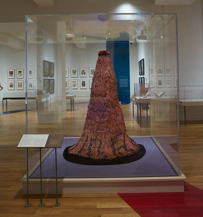 The exhibition “Visual Voyages: Images of Latin American Nature from Columbus to Darwin” runs from Sept. 16, 2017, to Jan. 8, 2018, in the MaryLou and George Boone Gallery. In this edited excerpt from the introduction to the exhibition catalog, Visual Voyages (Yale University Press, 2017), Daniela Bleichmar, associate professor of art history and history at the University of Southern California and co-curator of the exhibition, focuses on a 17th-century feathered cape created by the Tupinambá people of Brazil. The item is on loan from the Musées Royaux d’Art et d’Histoire of Brussels. Bleichmar discusses how European explorers attached meaning to this object that may have differed from its creator’s intent.
