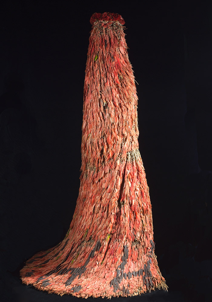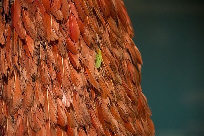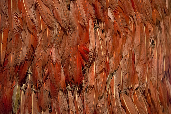 Sometimes, when walking through the hushed rooms of a museum, you come upon an object that stops you in your tracks. Take, for instance, this stunner: a red cape, six feet tall, made entirely of bird feathers. It is beautiful to behold: big, bright, intricately textured. You come closer, and your eyes widen as you realize that it was made by tying thousands of individual feathers together, one by one, using a fine rope to create a dense yet supple net.