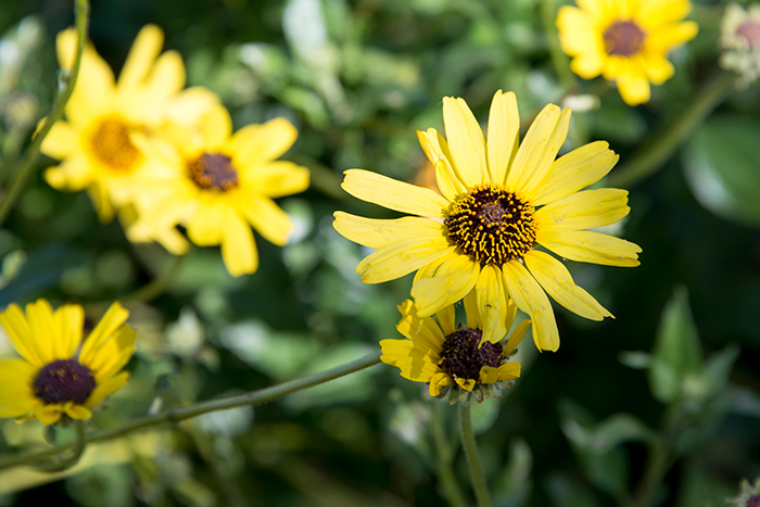 7. Encelia californica, coast sunflower: Kleinrock considers this a great pioneer plant. It grows quickly, producing a lush green shrub covered with medium-sized yellow flowers. Their sunny color looks good against many of the blue and purple flowers of other natives, and the plant gives you instant size and bloom. On the downside, it often lasts only three to five years. But by then, slower growers—such as manzanitas or oaks—will have started to grow in.